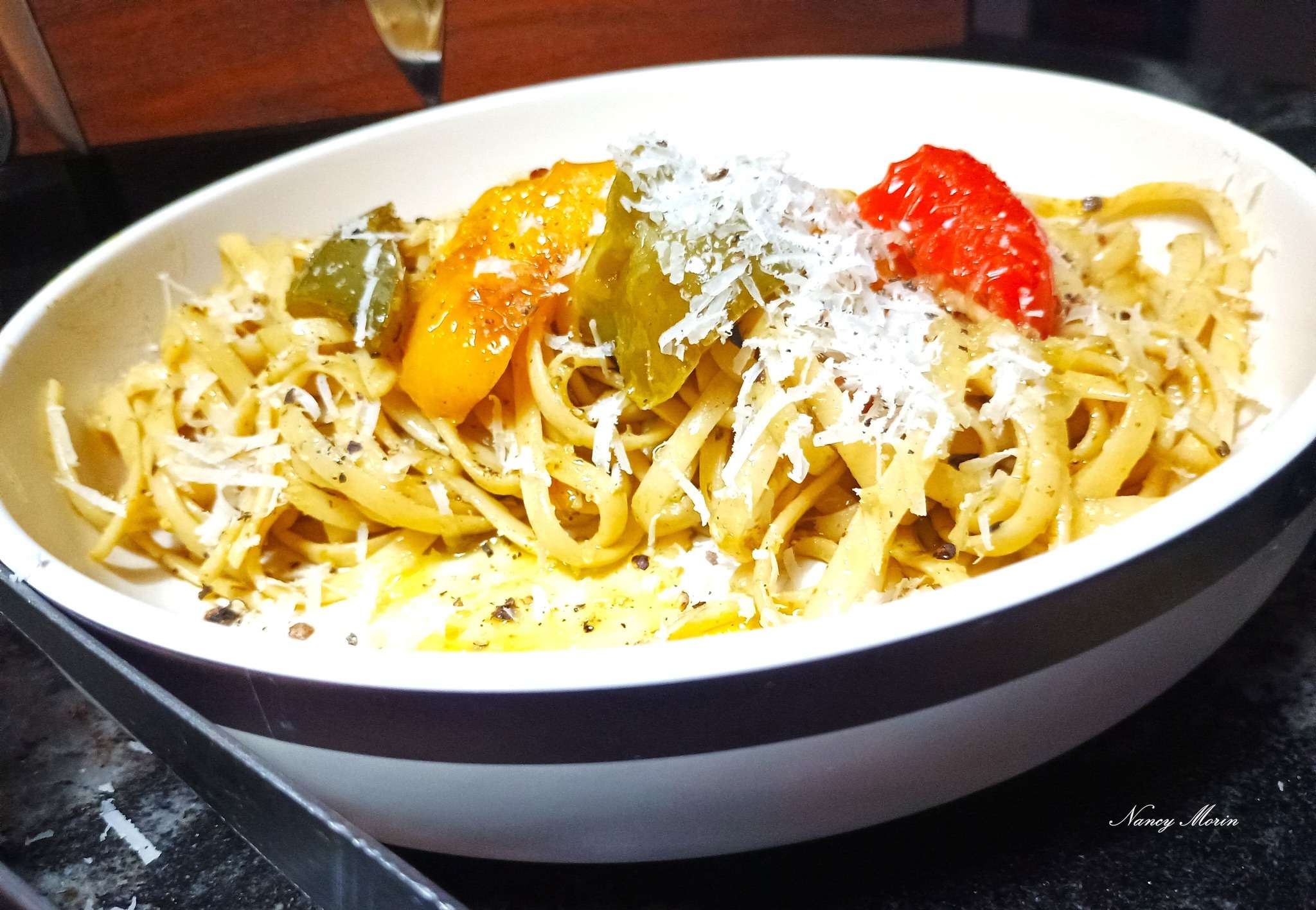 Linguine poivrons rôtis et pesto